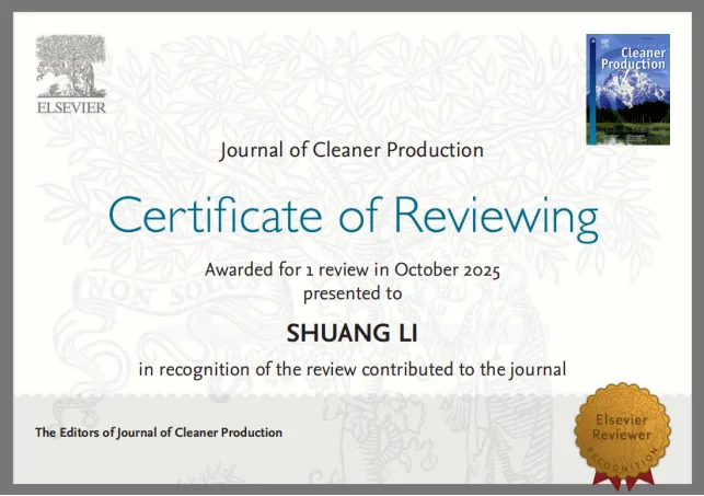 此次受邀担任《Journal of Cleaner Production》审稿人,不仅体现了国际学术界对李爽教授及其研究团队科研实力的高度认可,也将进一步促进我国在矿业安全、工业环境治理与可持续发展方向的研究成果与国际前沿平台的深度交流与融合。