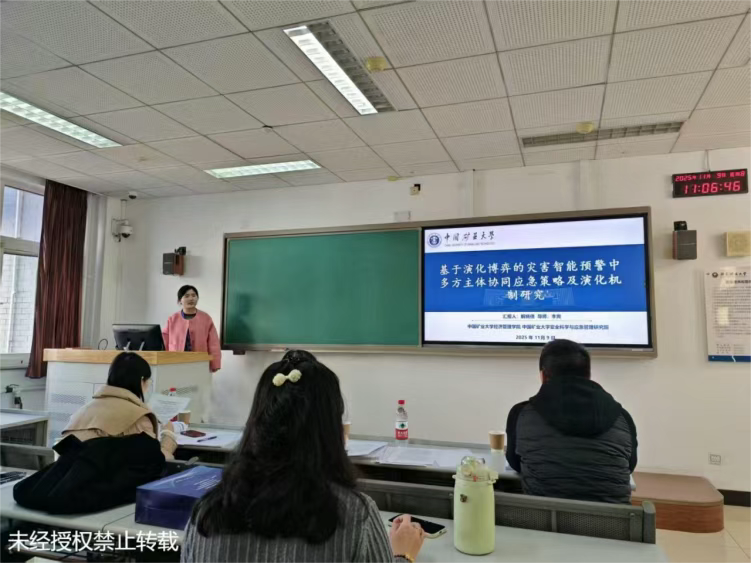 研究院博士研究生解晓倩 作《基于演化博弈的灾害智能预警中多方主体协同应急策略及演化机制研究》学术报告