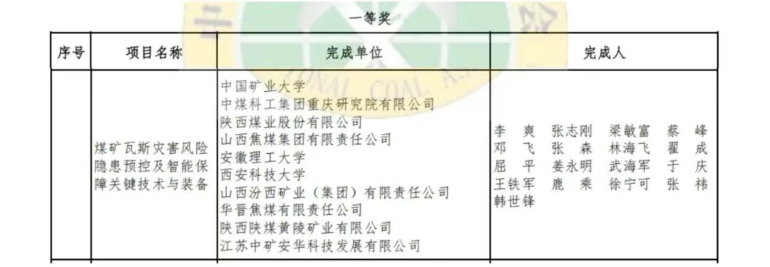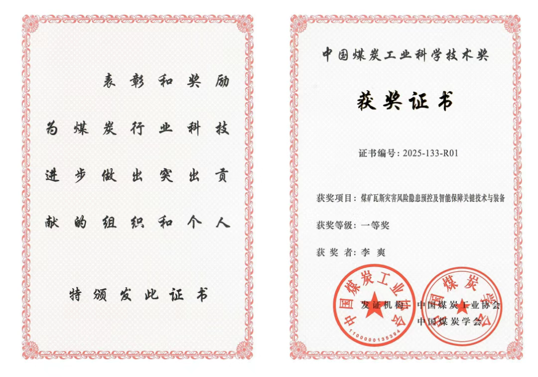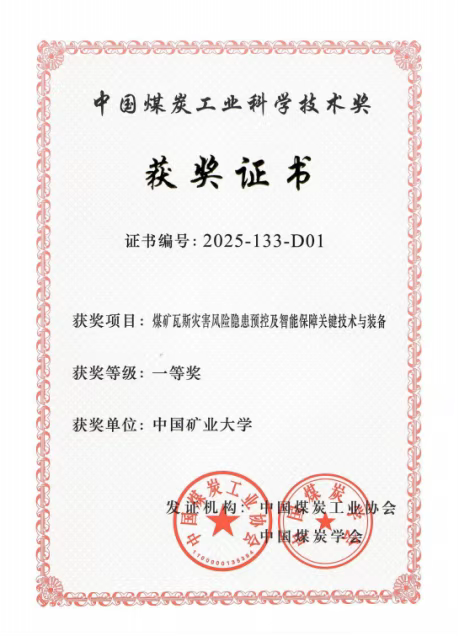 近日,2025年度中国煤炭工业科学技术奖评选结果在北京揭晓,中国矿业大学安全科学与应急管理研究院牵头完成的“煤矿瓦斯灾害风险隐患预控及智能保障关键技术与装备”荣获一等奖。中国矿业大学为第一获奖单位,李爽教授为第一获奖人。